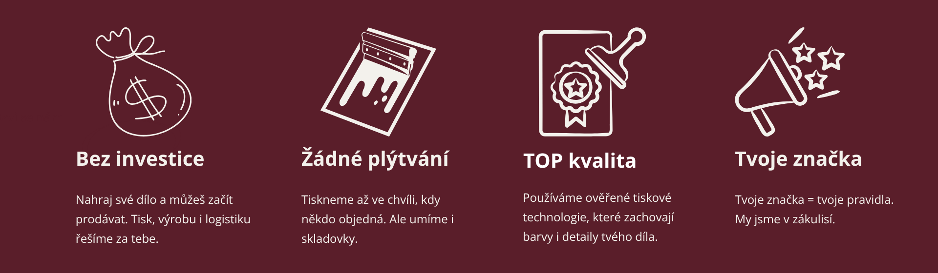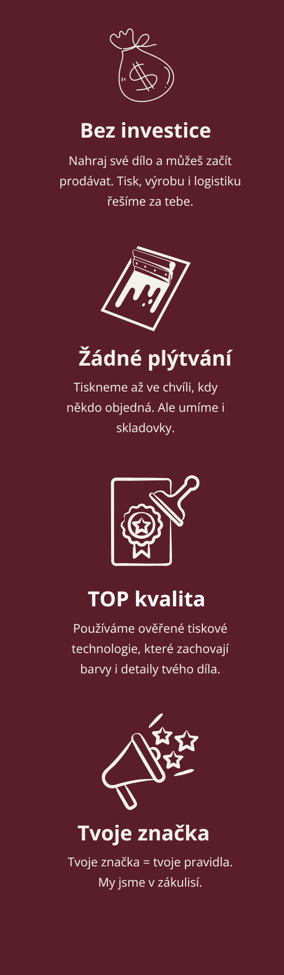 Bez stresu. Bez skladu. Bez řešení objednávek. A tobě každý měsíc chodí zisk z tvého merche.